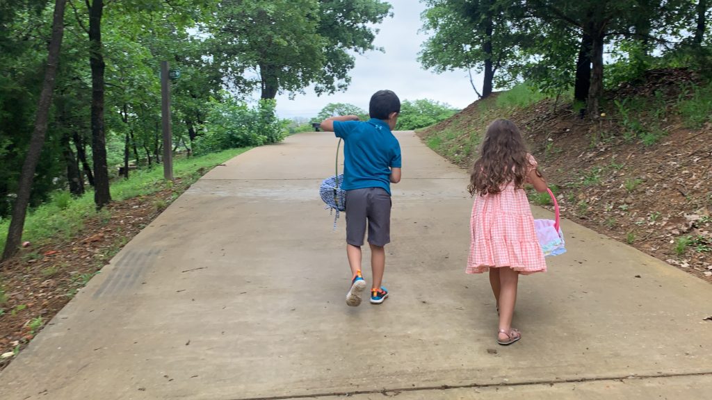 This Easter was very different. We woke up had an treasure hunt for baskets and the kids had so much fun! We watched church in our jammies, had an egg hunt, grilled burgers and stayed outside all day!