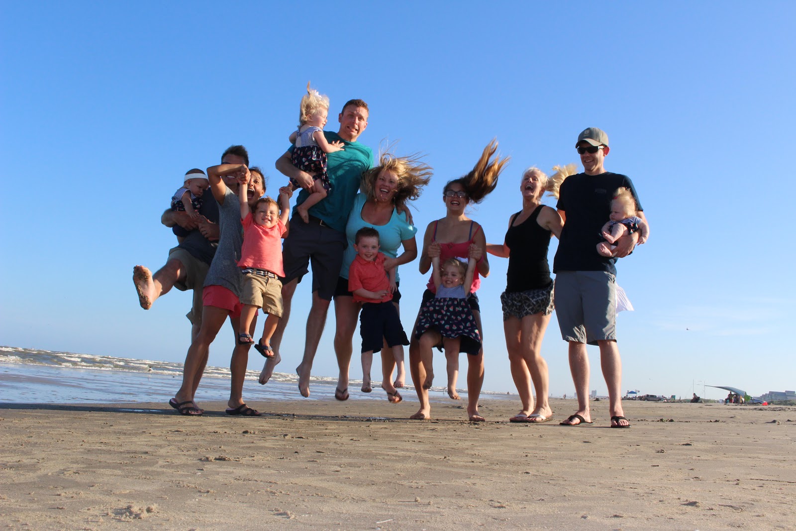 This year for our friendly vacation we took a road trip to Port Aransas! We rented a 15 passenger van and loaded up 6 kids, (all under the age of 4) 7 adults and drove the 10 hours to the coast.