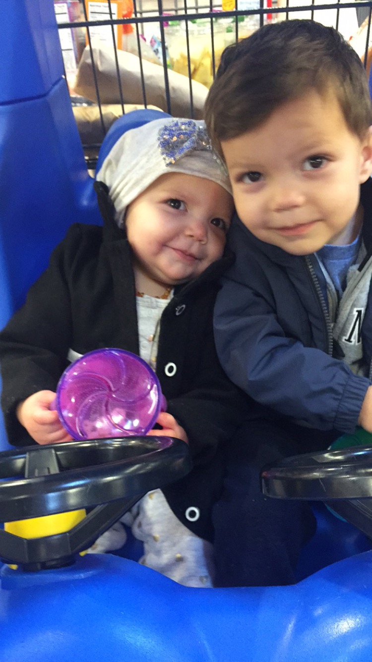 Grocery shopping with these two can be very difficult; packing snacks and keeping them entertained is tough. But then I look over and see this! Totally unprompted!
