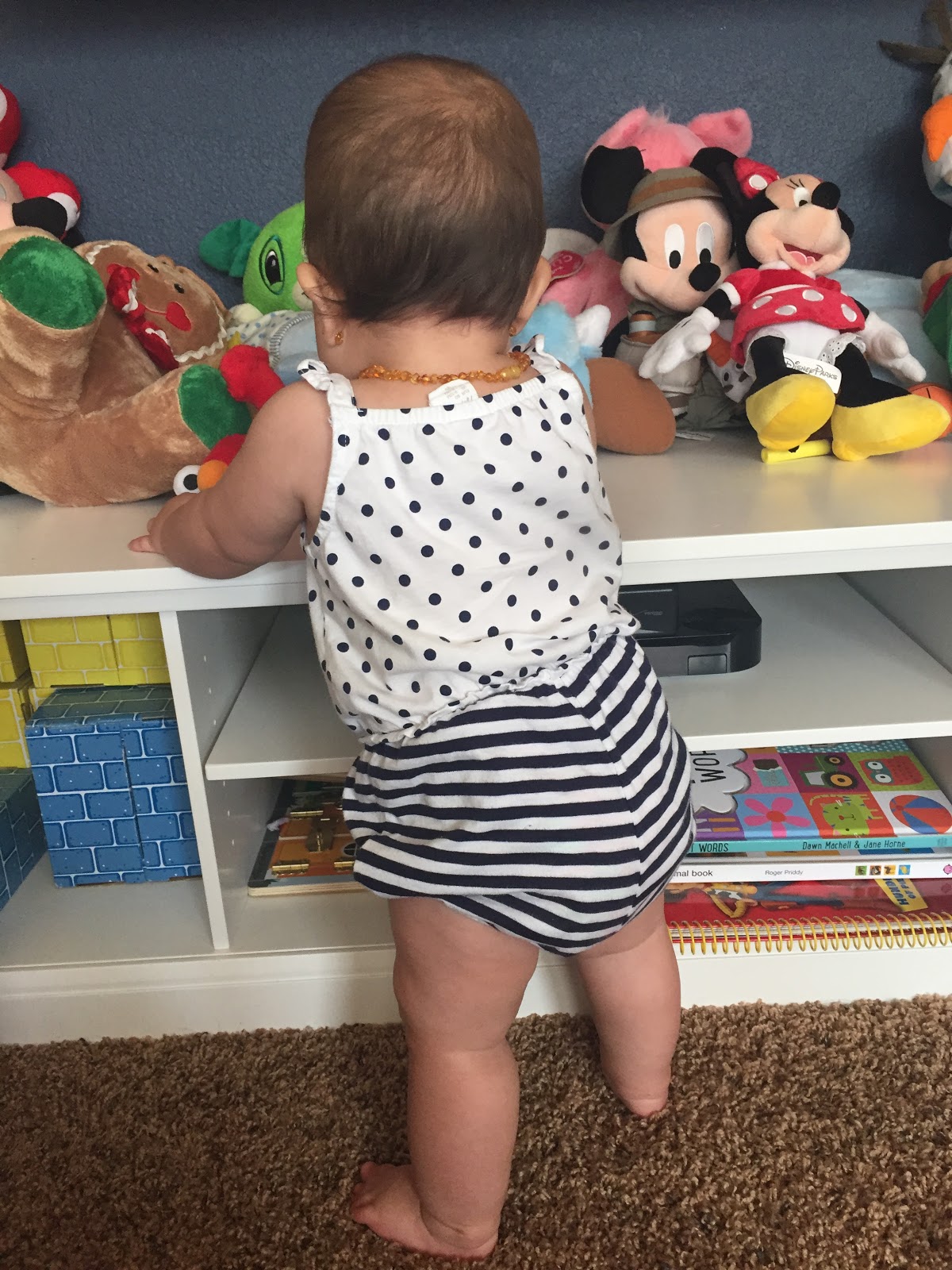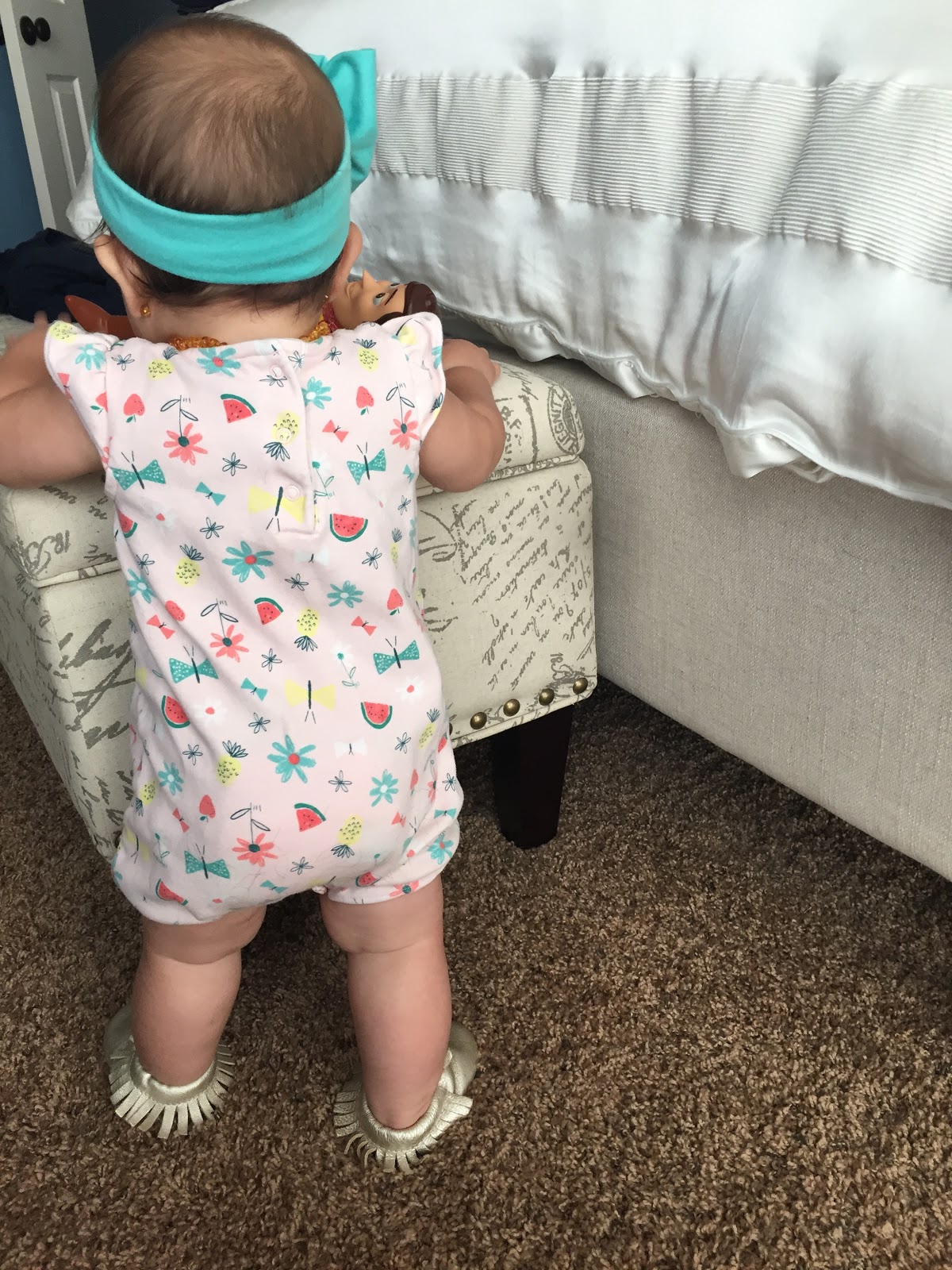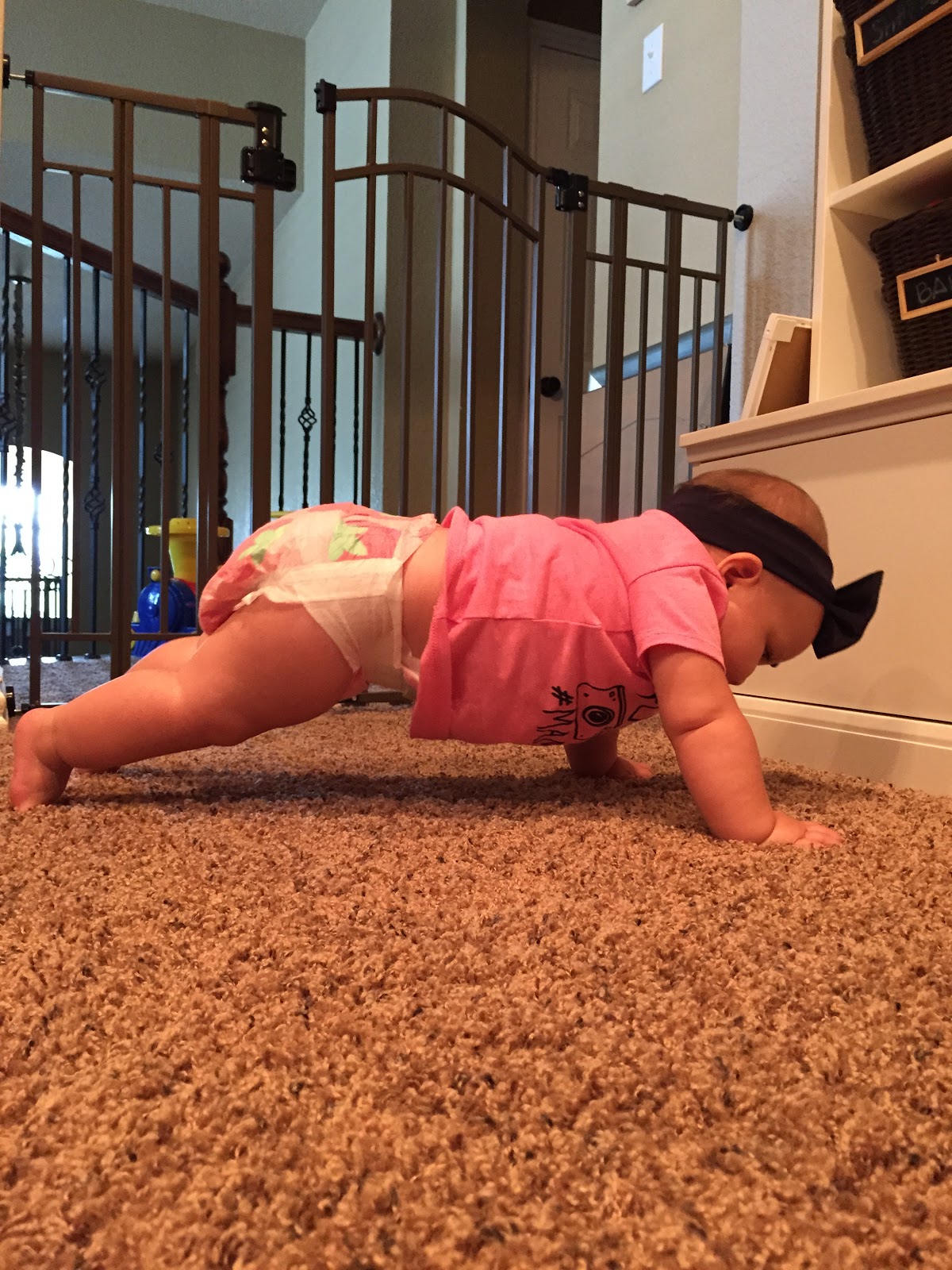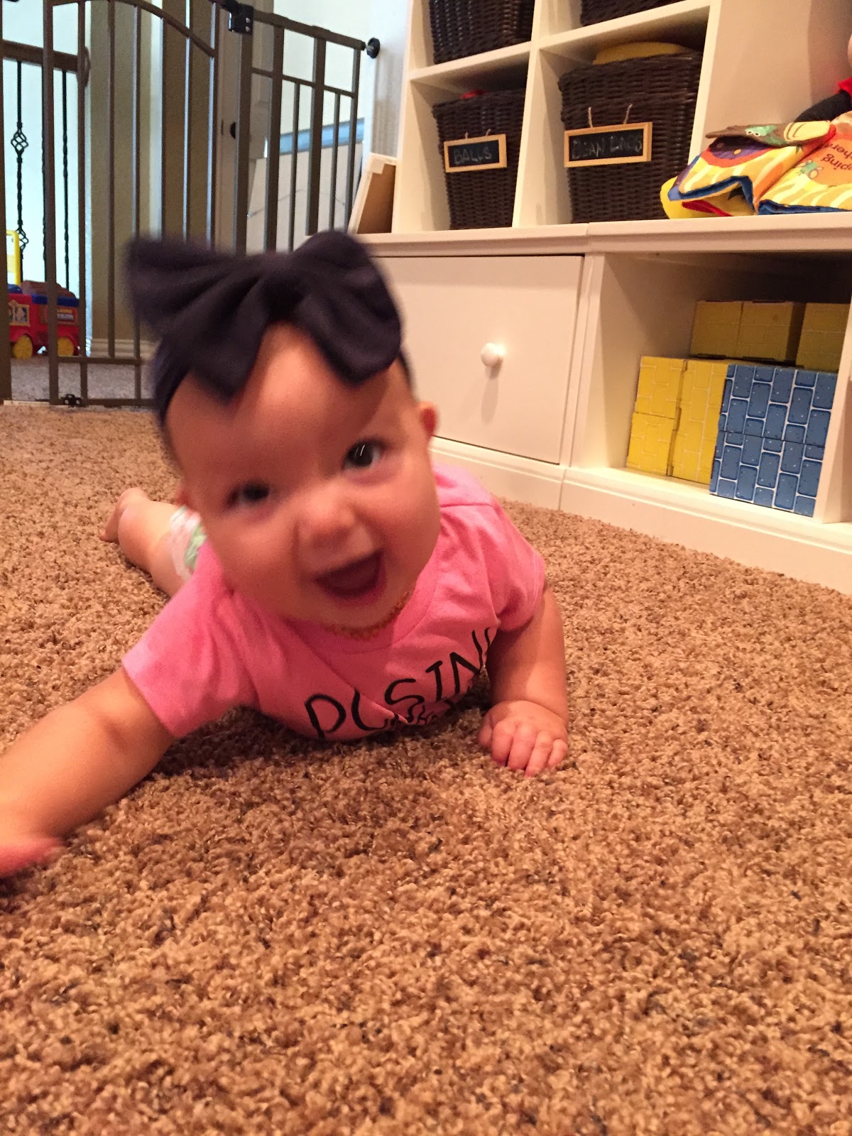 You sleep like a champ, usually 7-7 with a 2-2.5 hour nap during the day. You are very easy going and love when we talk to you. You have started dancing (swaying) whenever we sing to you and you clap when something makes you happy. You love crawling through the house and being outside. You get so excited for bath time (I think because you get uninterrupted brother time) and you would stay in the bath forever if you could! We love you fiercely baby girl!