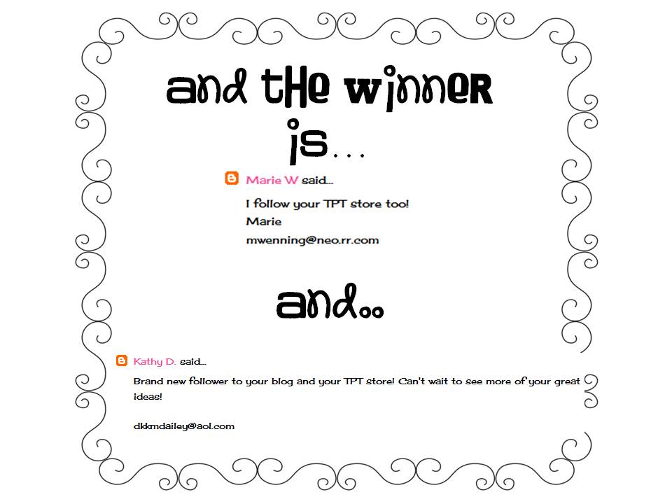 Marie W. and Kelly D. I will be emailing you today with your prize!