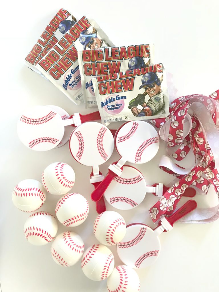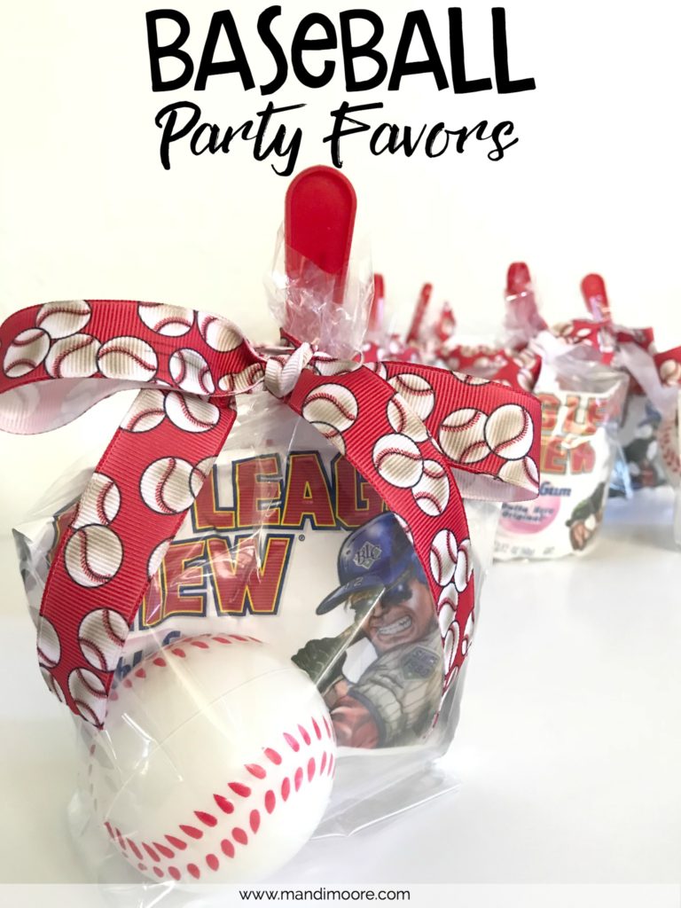 There really isn’t anything special about these favors, they were easy to put together and almost everything was ordered off Amazon. I got some cellophane bags and baseball ribbon from Hobby Lobby and that’s it!