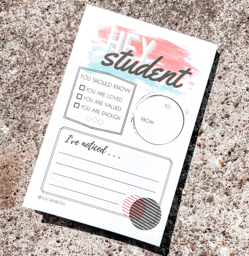 Like this adorable HEY STUDENT notepad! This student notepad is a MUST for every teacher’s classroom! Every child needs that little bit of encouragement and this notepad makes it super easy to make it a habit.