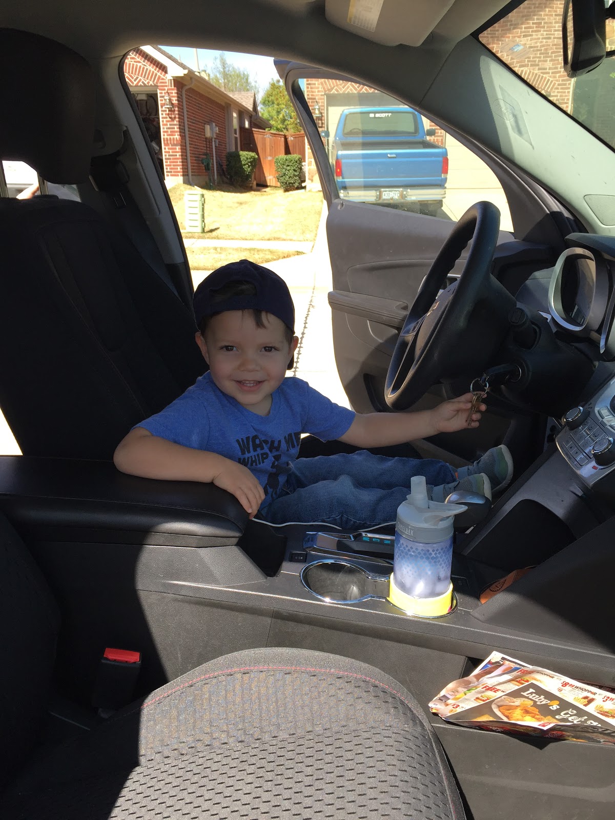 So everyone loaded up and Uncle Vinny showed Maddox how to start the car…