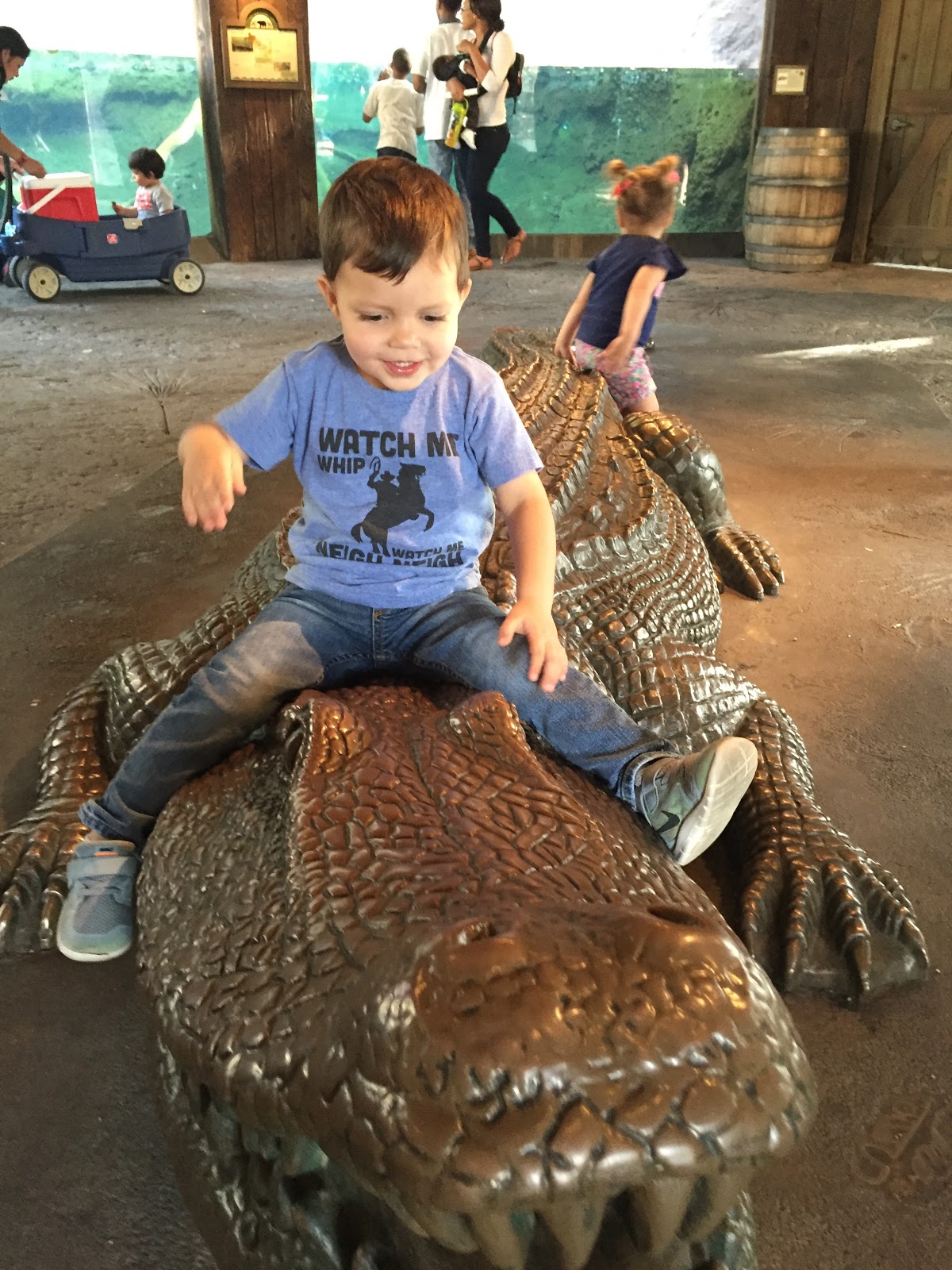 He was so proud of himself for climbing on the crocodile!